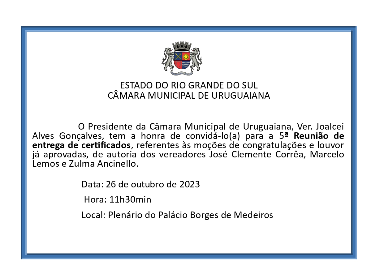 5ª Reunião entrega Certificados da 3ª Sessão Legislativa da 18ª Legislatura