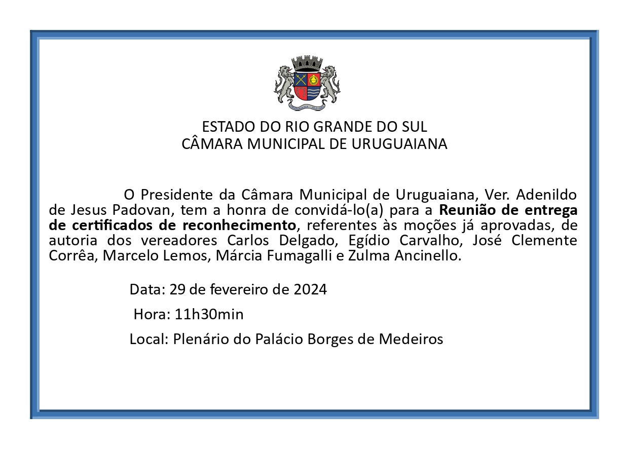 1ª Reunião entrega Certificados da 4ª Sessão Legislativa da 18ª Legislatura
