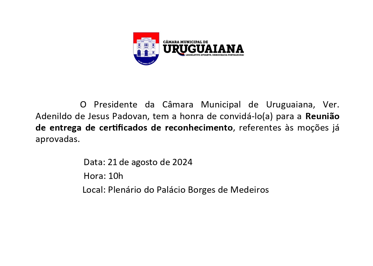 11ª Reunião entrega Certificados da 4ª Sessão Legislativa da 18ª Legislatura