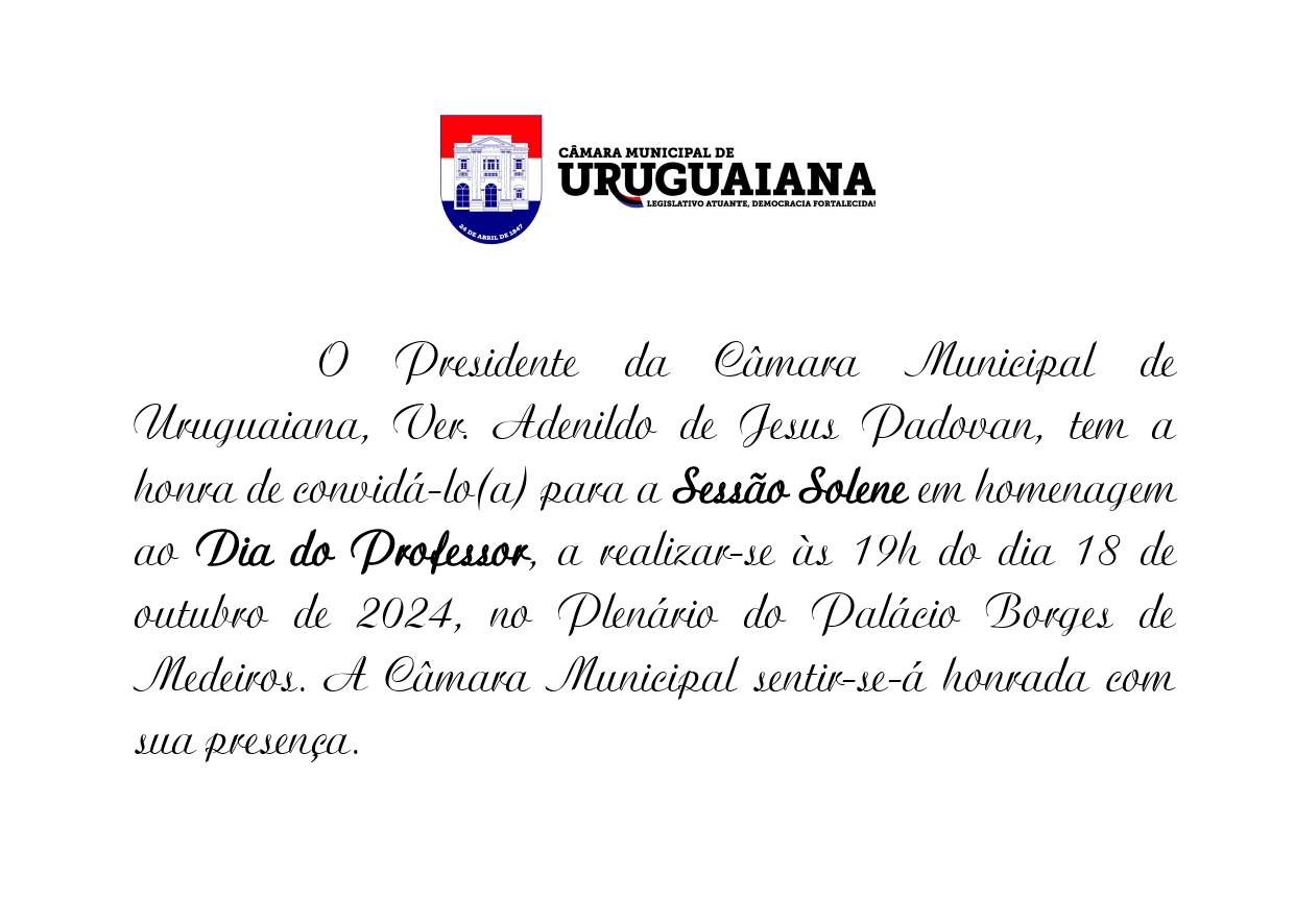 Sessão Solene para entrega de Diploma de Honra ao Mérito, destinado a professores, pelos relevantes serviços prestados à educação em Uruguaiana.