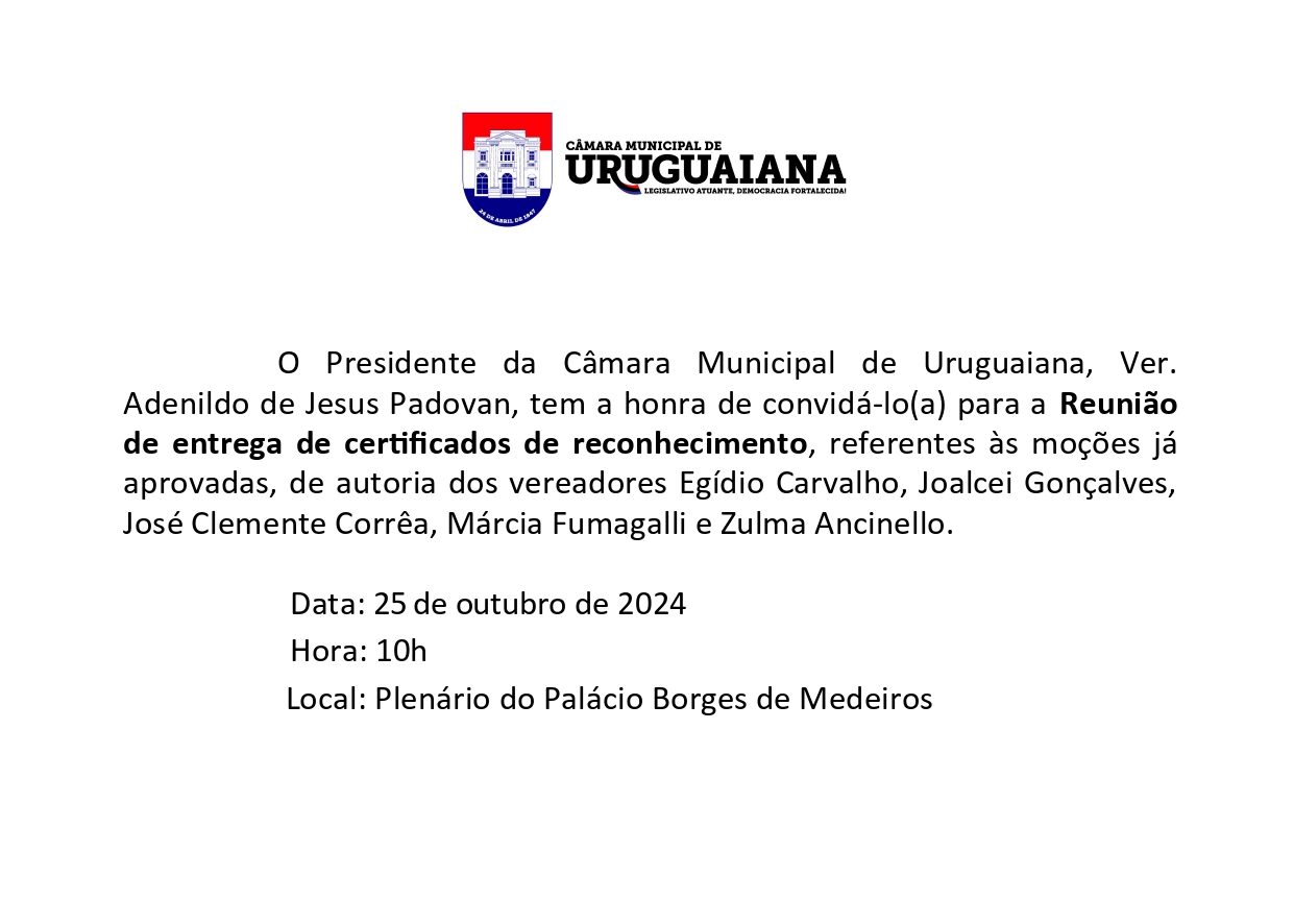 13ª Reunião entrega Certificados da 4ª Sessão Legislativa da 18ª Legislatura