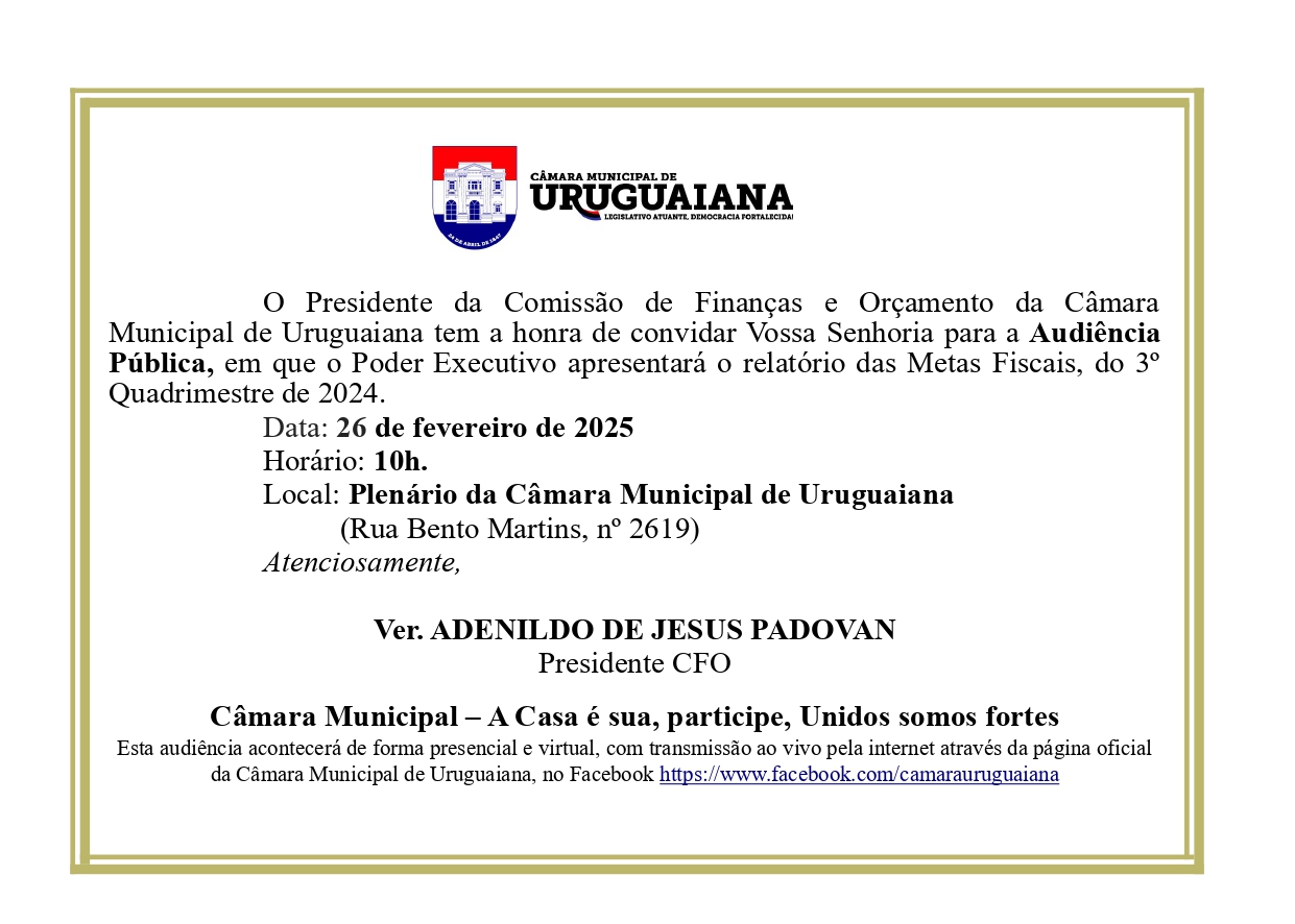 3ª Audiência Pública da 1ª Sessão Legislativa da 19ª Legislatura
