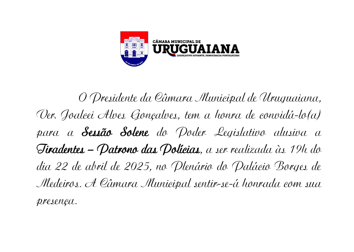 SESSÃO SOLENE ALUSIVA A TIRADENTES – PATRONO DAS POLÍCIAS
