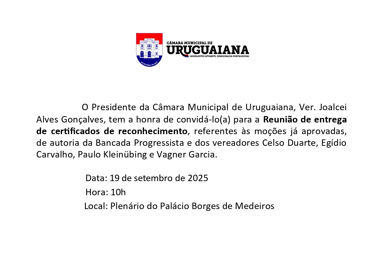 5ª Reunião entrega Certificados da 1ª Sessão Legislativa da 19ª Legislatura