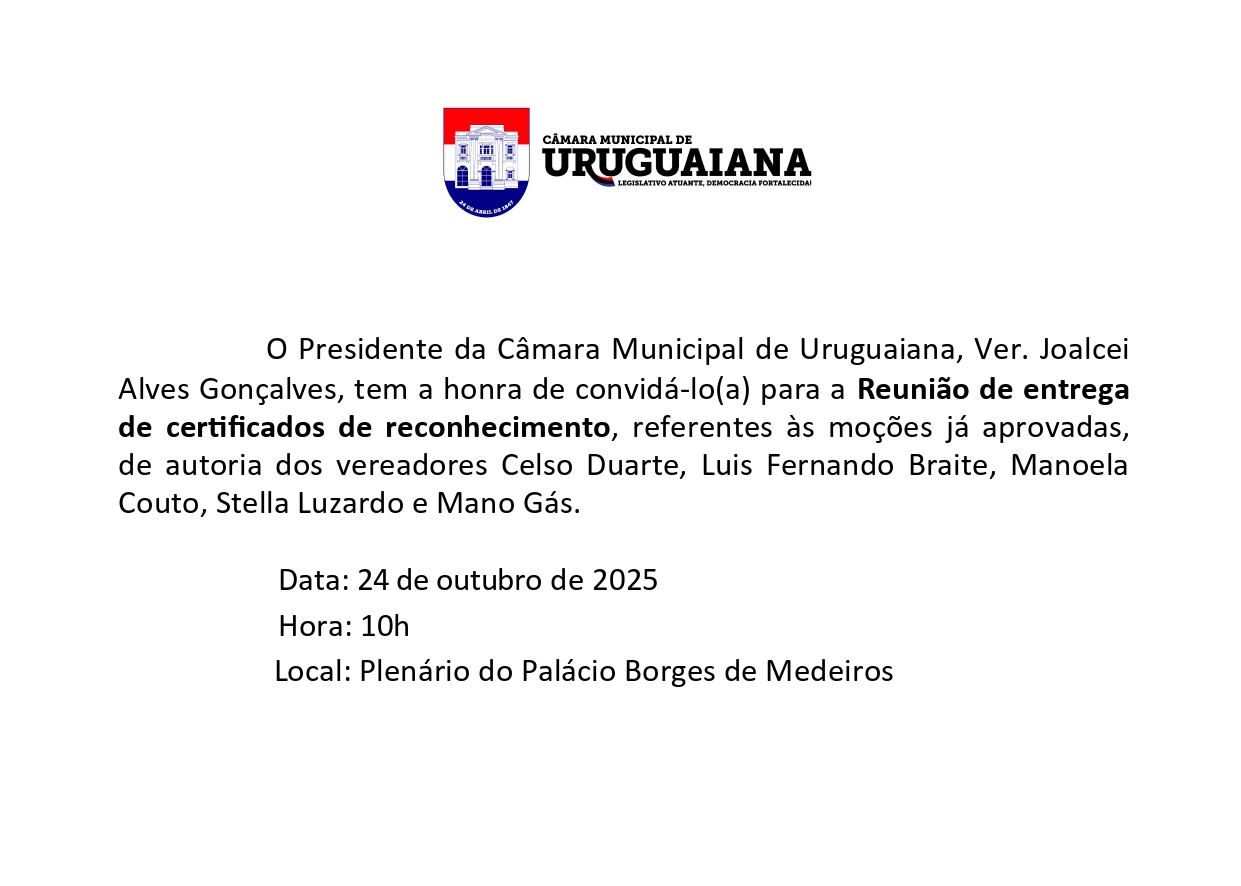 6ª Reunião entrega Certificados da 1ª Sessão Legislativa da 19ª Legislatura